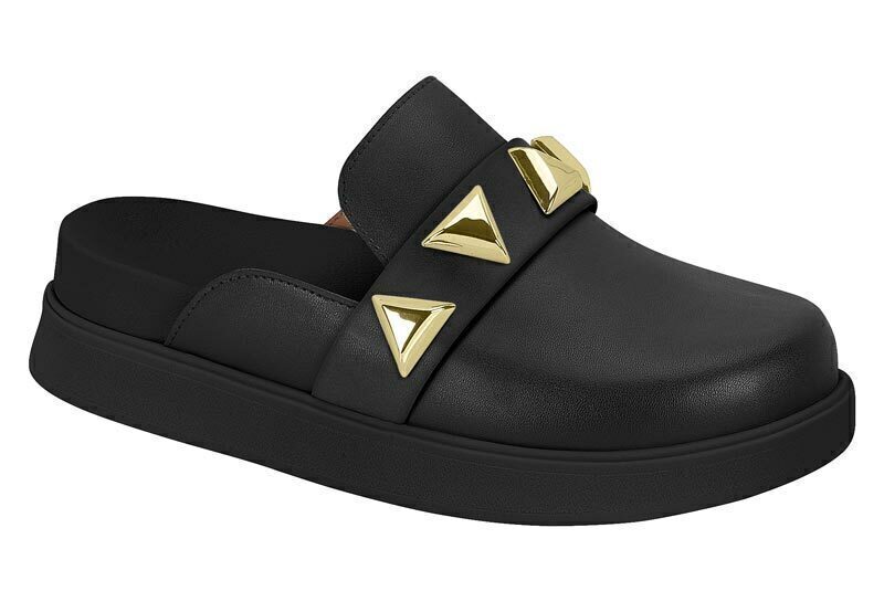 Os detalhes em metal adicionam um toque de estilo ao sapato,